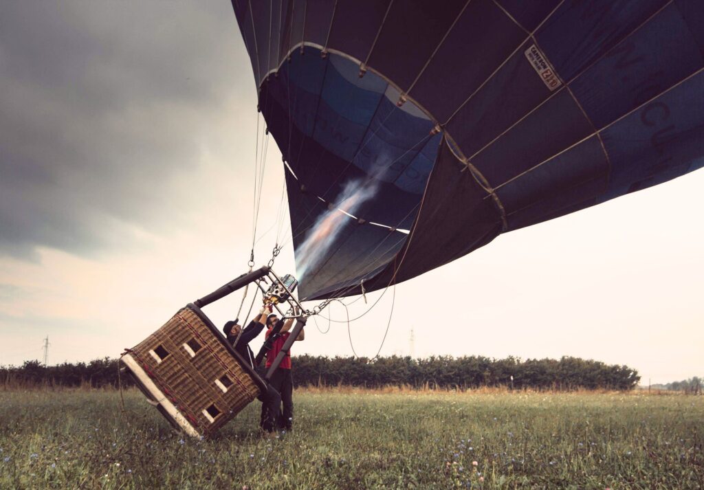 まずは気球で空を飛び水漏れの原因を探す。船が通ると水が流れ込む、そこのダムが水漏れしていたのが原因。見つけて土嚢でふさぐ。袋に入った土ね。